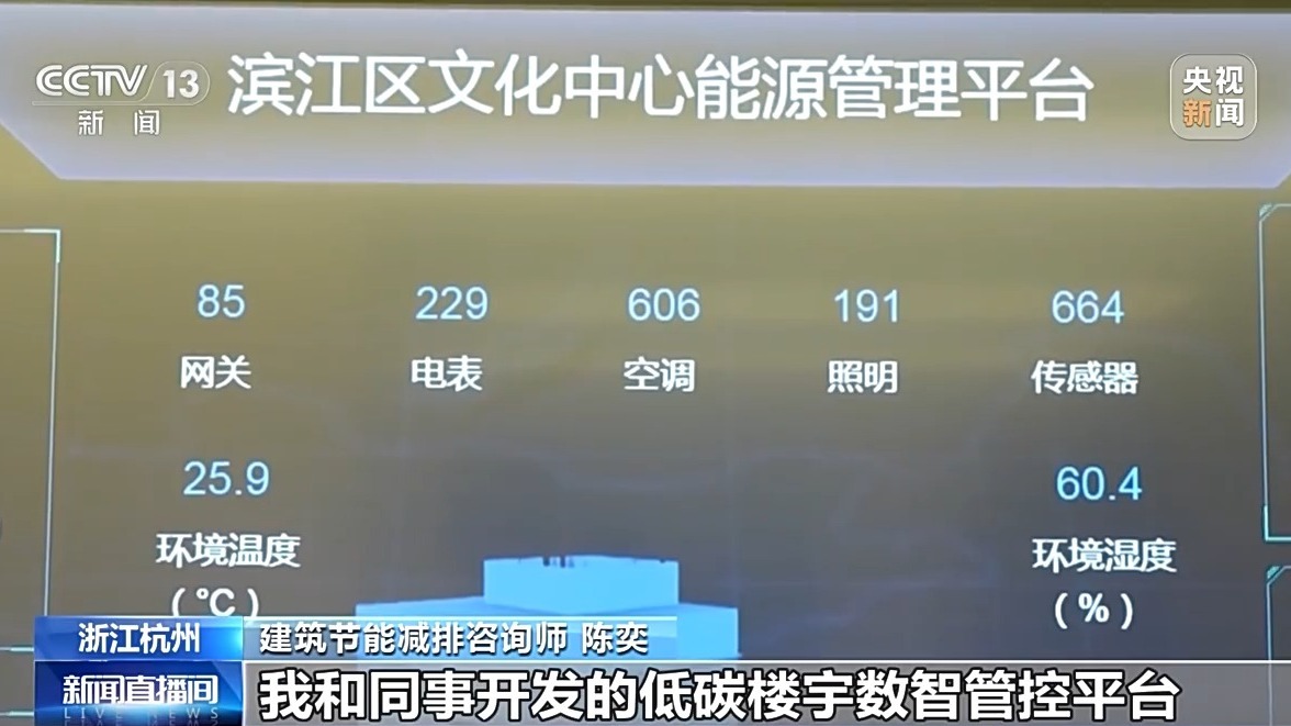 建筑节能减排咨询师 陈奕:大家好,我是陈奕,一名建筑节能减排咨询师,对于城市中号称“碳排放大户”的大楼来说,怎么才能更好地节能减排呢?这就需要我上场了。杭州市滨江区文化中心平均每年碳排放量达1000吨,而经过我和我的团队节能改造,这栋大楼平均每年能减少103吨二氧化碳排放,相当于种植了240亩茶园。100多吨二氧化碳排放从哪里去减少?最直接的当然是从遍布大楼的空调和电灯去入手。我会为要改造的大楼,量身设计物联网设备。