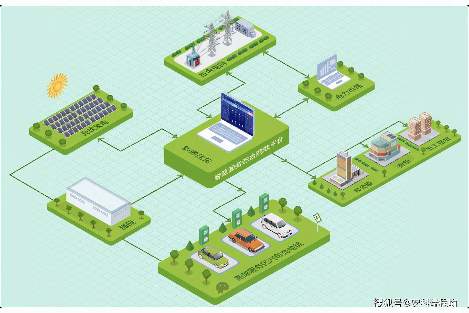 源 - 多元能源汇聚:在零碳服务区,“源” 主要为太阳能、风能等可再生能源。服务区利用屋顶、停车场等空间建设分布式光伏电站,结合风光互补系统,提供清洁电力。