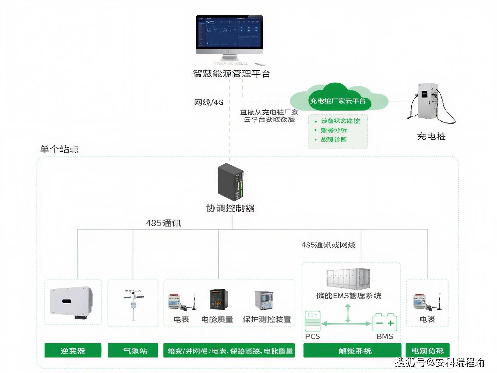 多源接入与协调困难:市电、柴油发电机、分布式光伏、储能及电动车充电桩等多能源接入,传统管理方式难以实现高效协同。