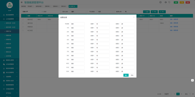提供丰富的用能管理手段,学校领导、管理者及能源管理数据层管理专员仅需在系统平台的控制室就可以通过软件系统查看各个区域、各个部门的用能情况,能及时提醒和预警相关用能部门、楼栋,促使各用能院系和部门自觉调整月度或年度用能额度,为学校领导和用能管理机构提供了丰富灵活地用能管理手段。