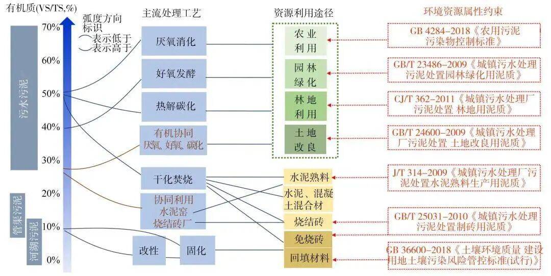 4散逸等排放。土地利用受限时,积极采用热解碳化工艺,采用焚烧工艺时应重视低品位余热的回收利用。对于管渠污泥和河湖底泥,重点在于去除杂质后无机颗粒的建材、工程利用,充分利用无机质替代天然黏土,减少自然资源开采,并尽量减少长距离运输带来的碳排放。